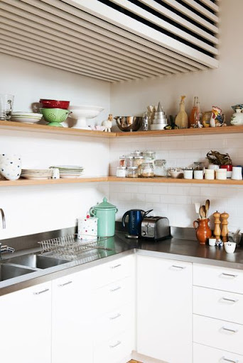 Mainly a spot for Sherry to keep her mugs and teabags near the kettle. From there we continued with a retro chrome kitchen table and bright colors throughout.